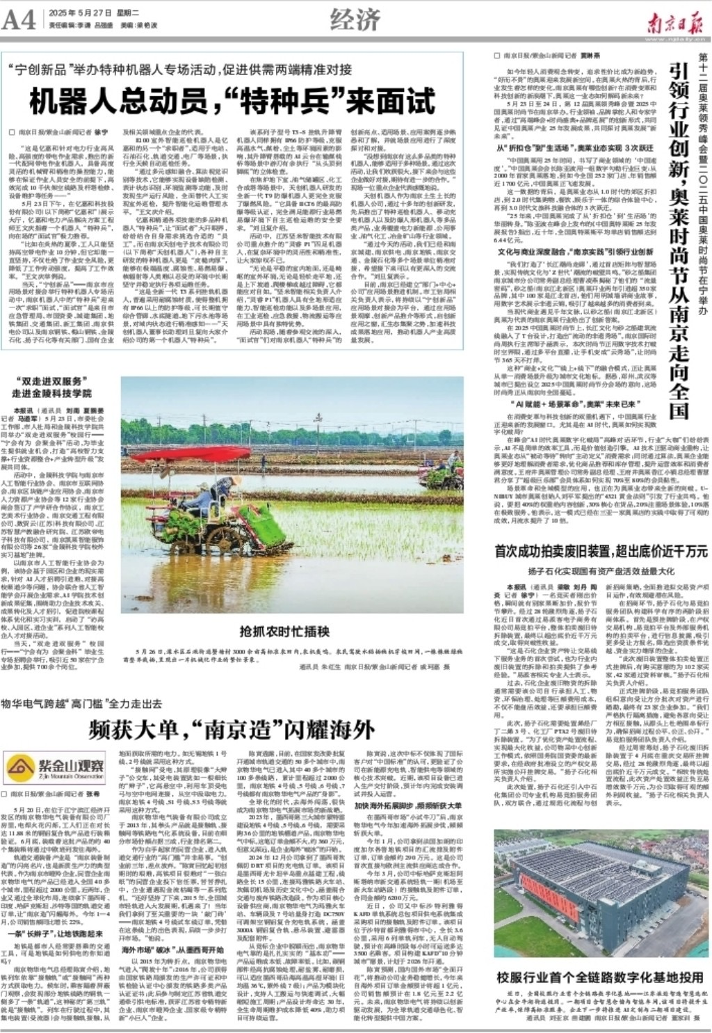 南京物华电气装备有限公司登上党媒《新华日报》《南京日报》